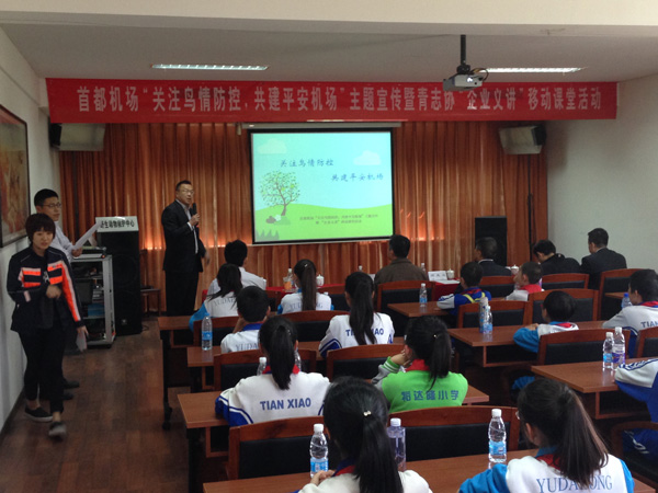 活動中,鄧先山向順義一中附小和裕達隆小學的學生代表頒發(fā)了“鳥擊防范小衛(wèi)士”榮譽稱號,贈送了鳥擊防范知識科普書籍,鼓勵同學們掌握科普知識,積極傳播正向的防鳥、驅(qū)鳥的安全理念。飛行區(qū)鳥擊防范模塊的青年員工積極向首都機場周邊學校宣講企業(yè)鳥擊防范安全理念,主動宣傳首都機場鳥擊防范重點工作、主要防范措施及科技創(chuàng)新內(nèi)容,通過幽默的語言講述,讓同學們在潛移默化中感知與學習。同時,北京市野生動物救護中心金牌講解員帶領同學們實地參觀各種鳥類,并現(xiàn)場講解鳥類知識,此次移動課堂的授課方式贏得了老師和同學們的一致好評。