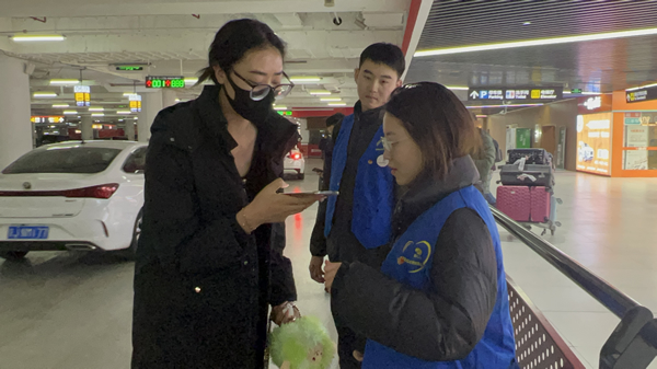 網(wǎng)約車不熟悉停車樓內(nèi)路徑是造成通道擁堵、秩序混亂的主要原因。為給乘客提供良好的乘車環(huán)境,公共區(qū)管理部團(tuán)員青年們積極作為,在2號(hào)停車樓內(nèi)開展車輛指引、疏導(dǎo)以及問詢等服務(wù)。他們將服務(wù)前移,在網(wǎng)約車專區(qū)入口處引導(dǎo)車輛進(jìn)入相應(yīng)停車點(diǎn)位,有效避免高峰期擁堵情況。在乘車區(qū)加強(qiáng)接駁換乘服務(wù),持續(xù)做好適老服務(wù)和無障礙服務(wù),幫助旅客搬運(yùn)行李,讓旅客快速上車、車輛快速駛離?!澳軌?yàn)槁每蛶韺?shí)實(shí)在在的幫助,一切辛苦都是值得的?!笨粗约簠f(xié)調(diào)下有序出入場(chǎng)的一輛輛網(wǎng)約車,青年們臉上洋溢著幸福的笑容。
