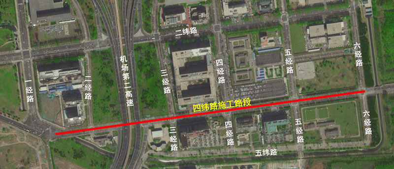 首都機場四緯路位于3號航站樓南側(cè)工作區(qū),呈東西走向,施工范圍為一經(jīng)路至六經(jīng)路,路段全長1091米。屆時將采取交通管理措施如下: