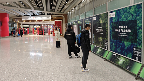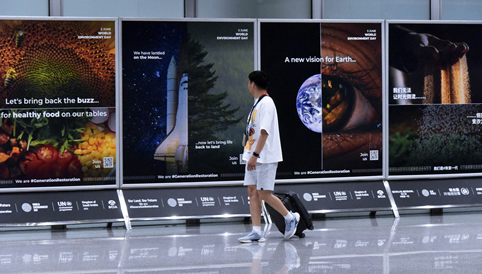 自3月27日起,首都機(jī)場(chǎng)攜手聯(lián)合國(guó)環(huán)境署,在首都機(jī)場(chǎng)3號(hào)航站樓舉辦“國(guó)際零廢物日”主題的圖片及視頻展播