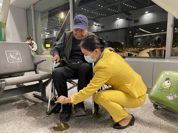 同時(shí),首都機(jī)場還針對老年群體推出了“鄉(xiāng)音隨行”特色服務(wù)。首都機(jī)場暖陽團(tuán)隊(duì)在接到老年旅客“愛心陪伴服務(wù)”的預(yù)訂信息后,主動(dòng)聯(lián)系旅客確認(rèn)航班信息、接駁地點(diǎn)、服務(wù)需求等內(nèi)容,并可根據(jù)旅客始發(fā)地或目的地信息,為旅客在值機(jī)、安檢、登機(jī)等重要環(huán)節(jié)提供方言服務(wù)。