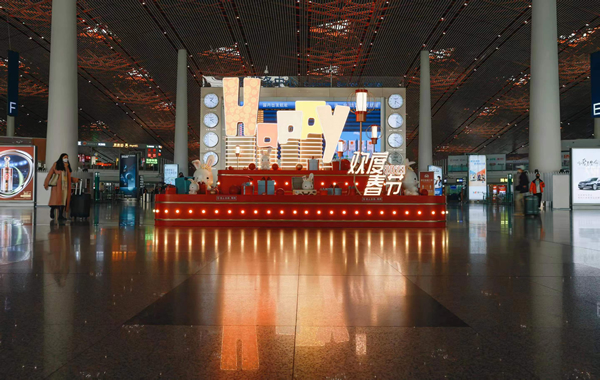 為營造濃厚的節(jié)日氛圍,近日,首都機場新年主題創(chuàng)意景觀精彩亮相,為廣大旅客送上真摯的節(jié)日祝福。