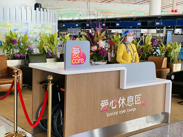 該愛心休息區(qū)位于出發(fā)層核心區(qū)域,配有醒目的標(biāo)志、專業(yè)的團(tuán)隊和舒適的空間,可為預(yù)約首都機(jī)場特殊旅客服務(wù)的老年人、殘疾人、孕婦、兩院院士等特殊人群提供舒適的休息環(huán)境。同時,愛心休息區(qū)值守問詢員還可隨時為休息旅客提供問訊、航班出發(fā)提醒、輪椅借用、免費電瓶車及愛心陪伴服務(wù)。