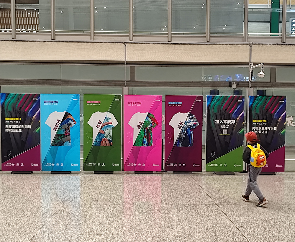 自3月27日起,首都機場攜手聯(lián)合國環(huán)境署,在首都機場3號航站樓舉辦“國際零廢物日”主題的圖片及視頻展播,呼吁公眾關(guān)注時尚和紡織行業(yè)在應(yīng)對全球廢棄物污染危機中的重要作用,倡導(dǎo)社會公眾通過實際行動減少廢棄物產(chǎn)生,從而減少資源消耗和環(huán)境污染。據(jù)悉,3月30日為“國際零廢物日”,今年的主題為“在時裝和紡織品行業(yè)實現(xiàn)零廢物”。據(jù)聯(lián)合國環(huán)境署發(fā)布的《2024年全球廢棄物管理展望》,時尚和紡織行業(yè)正在助長大規(guī)模的過度消費和廢物污染,需要通過可持續(xù)的生產(chǎn)和消費模式以及循環(huán)解決方案來進行系統(tǒng)性變革,從而緩解全球廢物污染危機。張丹 陳穎 攝影報道